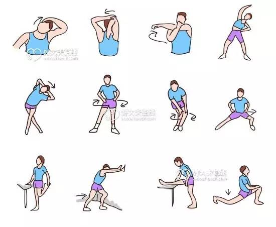 如果你不热身就直接进入高强度的有氧训练,心血管系统和呼吸系统会来不及入状态,体温也比较低,肌肉血液供应和柔韧性不好,就很容易造成韧带和肌肉等软组织损伤损伤。以下推荐几个热身动作。↓↓↓